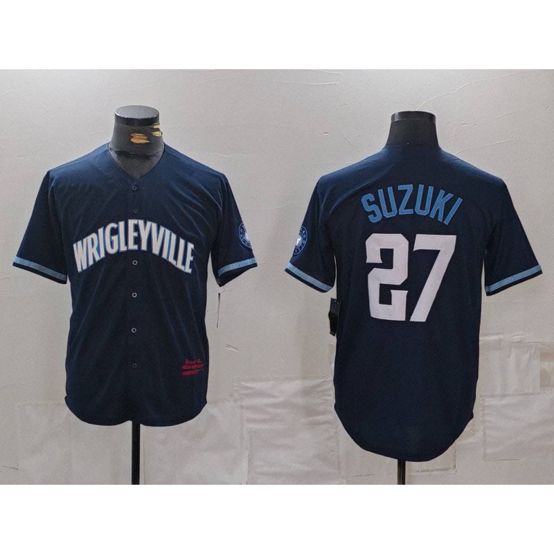 Chicago Cubs #27 Seiya Suzuki Navy City Connect Cool Base Stitched Baseball Jersey