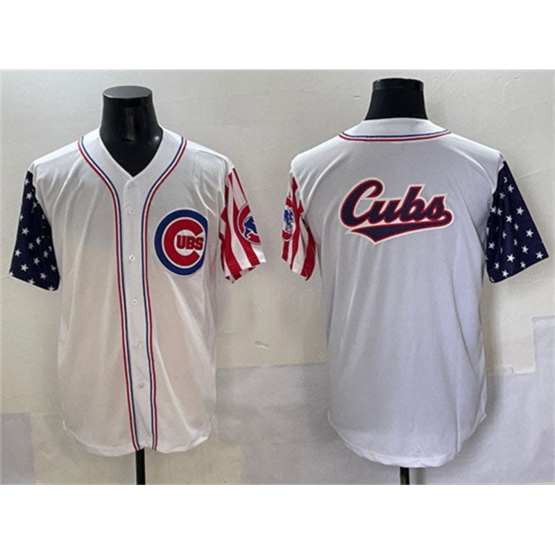 Chicago Cubs Team Big Logo White 2025 Independence Day Vapor Premier Limited Stitched Baseball Jersey