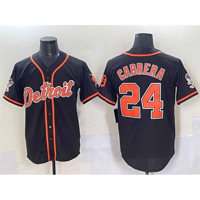 Detroit Tigers #24 Miguel Cabrera Black With Patch Cool Base Stitched Baseball Jersey