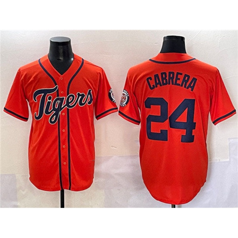 Detroit Tigers #24 Miguel Cabrera Orange With Patch Cool Base Stitched Baseball Jersey