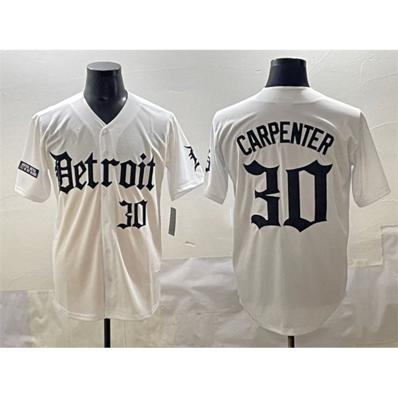 Detroit Tigers #30 Kerry Carpenter White ‘Motor Gothic Edition’ Vapor Premier Limited Stitched Baseball Jersey