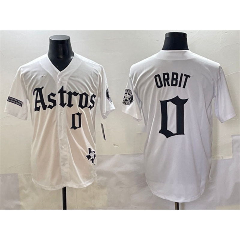 Houston Astros #0 Orbit White Gothic ‘Houston Born Barrio Raised’ Limited Stitched Baseball Jersey
