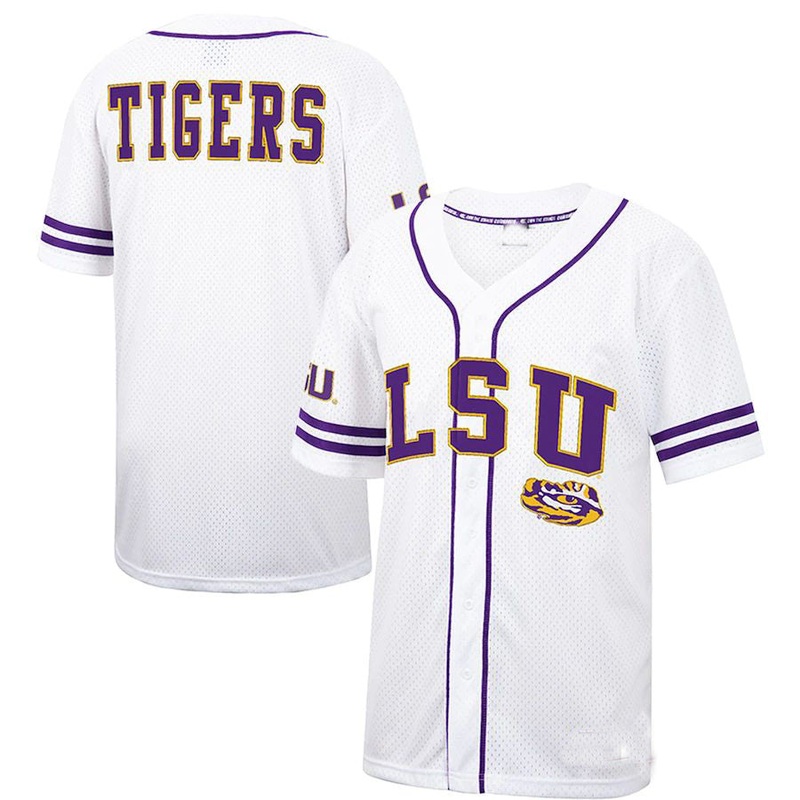 L.Tigers Colosseum Free Spirited Baseball Jersey White Purple Stitched American College Jerseys
