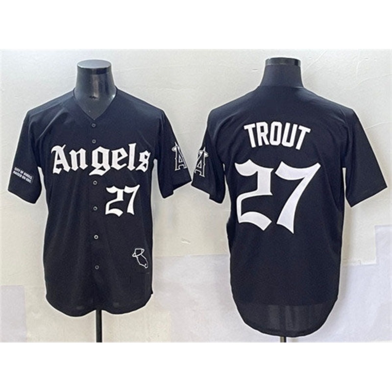 Los Angeles Angels #27 Mike Trout Black ‘Gothic Halo Edition’ Vapor Limited Stitched Baseball Jersey