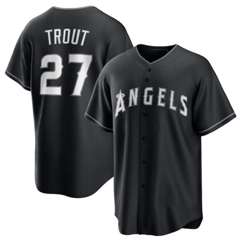 Los Angeles Angels #27 Mike Trout Black Lights Out Limited Stitched Baseball Jersey