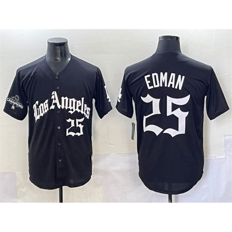 OCD620340292463Los Angeles Dodgers #25 Tommy Edman Black Mexico 2025 LA Gothic Style With 2024 World Series Champions Patch Vapor Premier Limited Stitched Baseball Jersey