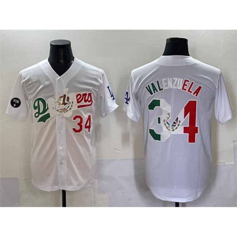 Los Angeles Dodgers #34 Fernando Valenzuela White Mexico Special Vin Scully Patch Stitched Baseball Jersey