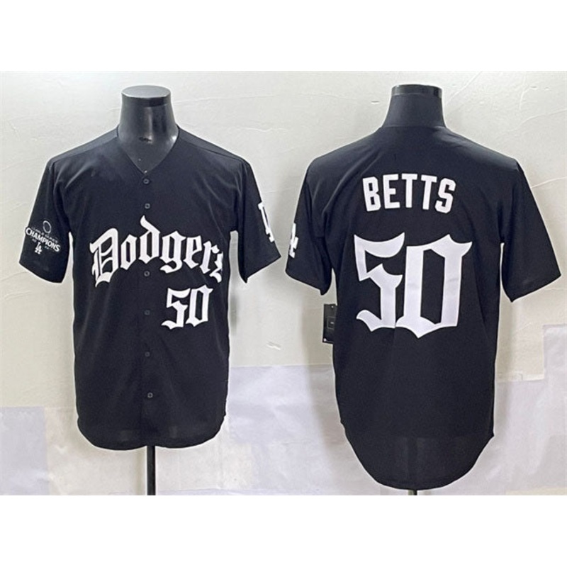 OCD620340292457Los Angeles Dodgers #50 Mookie Betts Black 2025 LA Gothic Style With 2024 World Series Champions Patch Vapor Premier Limited Stitched Baseball Jersey