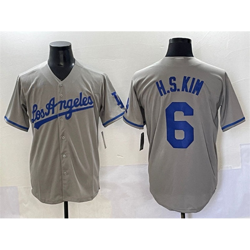 Los Angeles Dodgers #6 H.S.Kim Gray Cool Base Stitched Baseball Jersey